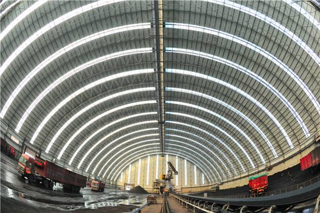 堆场料场封闭式主体结构为新型的钢韶山网架结构,维修结构为韶山钢结构韶山不锈钢板和纤维增强塑料灯具,其外形以韶山网架式和平板为主,连接柱韶山施工自由,设置喷雾自动喷水系统,从而可以实现棚内所有物料的覆盖,减少物料在运输过程中的损耗,起到防尘的作用,减少工厂关闭后的二氧化硫排放量,50mg/m3颗粒排放量小于10mg/m3,非常适合低能耗。低闭库自动感应反应对库存轮胎进行清洁,确保轮胎不受道路污染;封闭的储存区可从源头控制粉尘污染,控制无序排放。